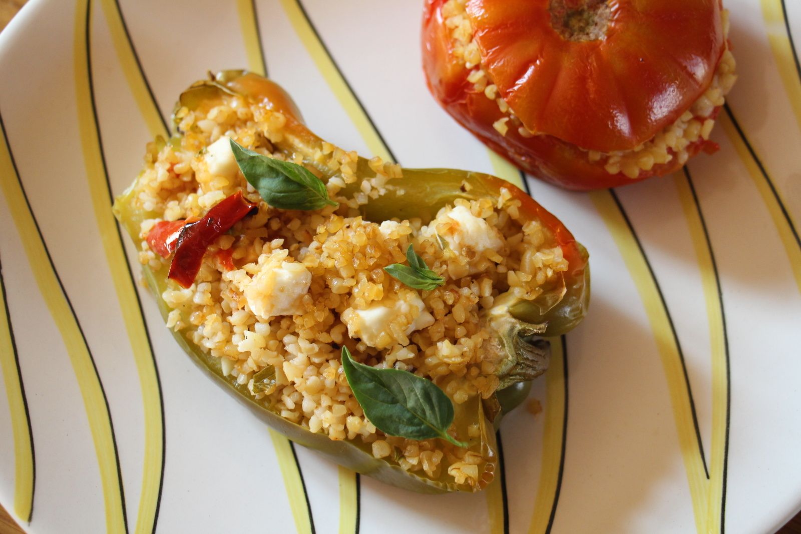 Remplissez les légumes avec le mélange de boulgour puis enfournez à 180 degrés pendant 20 minutes.
